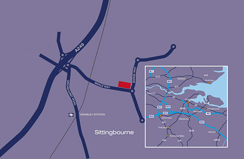 Sittingbourne is situated approximately 46 miles to the south east of Central London within the Thames Gateway, Europe's largest regeneration area. Kemsley Fields Business Park is an emerging commercial area north west of Sittingbourne close to the A249 dual carriageway which links the port of Sheerness, seven miles to the north, with the M2 (Junction 5) and the M20 (Junction 7), four and eight miles to the south respectively. The area is home to a 920,000 ft² Morrisons RDC as well as a manufacturing plant and the UK HQ of the international dry wall company Knauf and the Kemsley paper mill operated by D S Smith plc’s UK paper division St Regis.