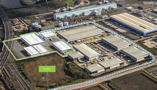 Phase 4, which was completed in 2017, comprises 141,693ft² (13,164m²) of industrial/warehouse accommodation arranged over three speculatively developed self-contained detached units: Unit 15 at 51,693ft² (4,802m²), Unit 16 at 55,670ft² (5,172m²) and Unit 17 at 35,000ft² (3,252m²). Units 15 and 17 were pre-let during construction to Precision Printing Co. Ltd and Bunzl UK Ltd respectively. Unit 16, which can be split into two equal sized units of 27,835ft² each, is available to let.